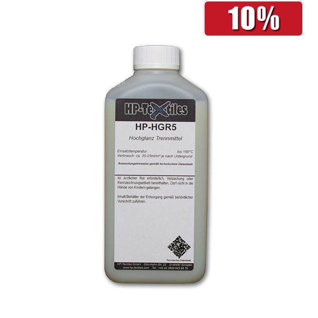 HP-HGR5 is a release agent for In-Mould Coating HP-IMC and other thermosetting resins by HP-Textiles. Enables demouldings / castings with high gloss qualities. Very low consumption, short drying time, high effectivity.